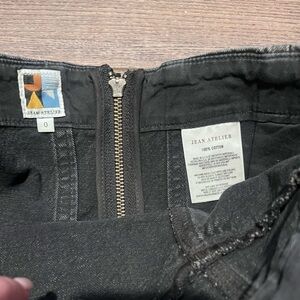 Jean Atelier black cross button luxury dress size 0 or xs distressed denim onyx