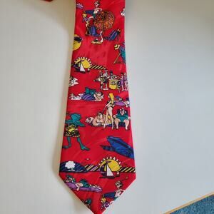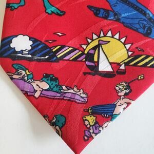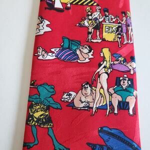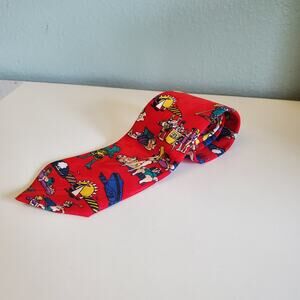Jean Baptiste Caumont Red Silk Novelty Print Beach Vacation Quirky Tie