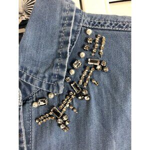 Jean Button Up Size 10/12 Shirt Rhinestone Embellished Collar