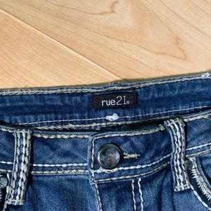 These Jean Cuffed Capris have cute little lace accents on the back pockets and on the small pocket in the front. These Capris also have rhinestones on the buttons.