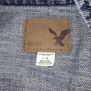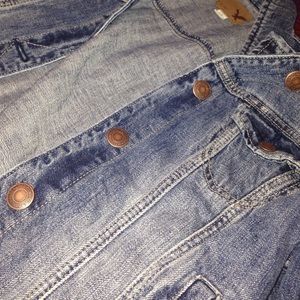 It's a button up jean jacket with pockets on the side and chest area with collar no tears or stains