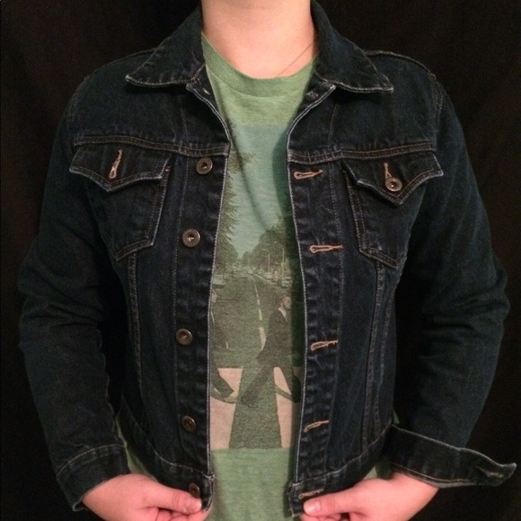 This dark wash jacket has been gently worn before but shows no signs of wear or tear!