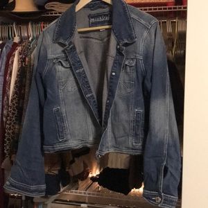 Maurice’s jean jacket. Bottom of he jacket hits high natural hip.
