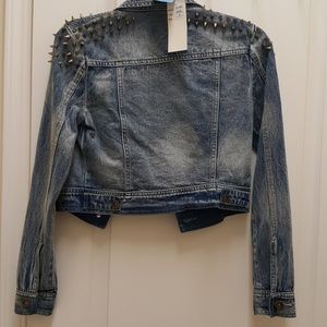 Blue jean jacket with gold spikes on shoulders