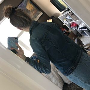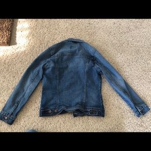 Has been worn, but still looks like new. Could use an iron around collar and bottom to make them stay straight. I’m 5’5” 107 lbs. for reference. I wear an XS or S depending on the brand (normally an XS for Old Navy) and this jacket fits perfectly.