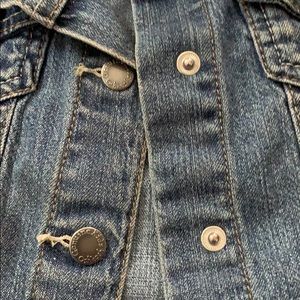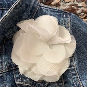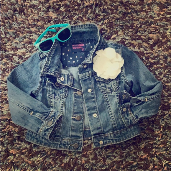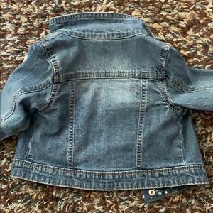 EIC SUPER adorable kids jean jacket. White flower attached to left chest (can not remove). Snap closure down front and at cuffs. 99% cotton so soft and not stiff. Perfect jacket!