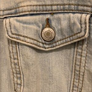 This light wash jean jacket is super soft. The sleeves roll up easily and it hits right around the hips.