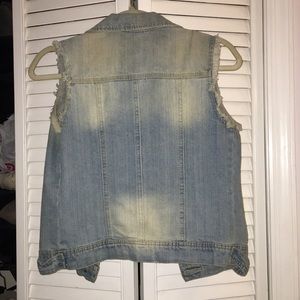 Distressed sleeveless jean jacket
