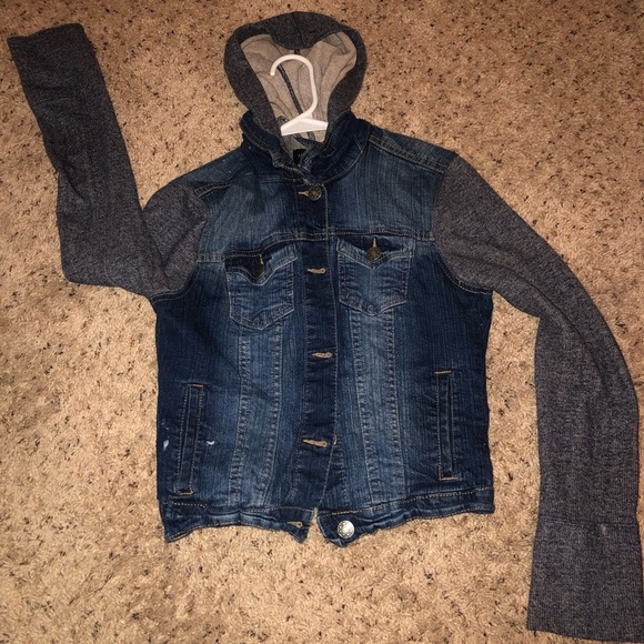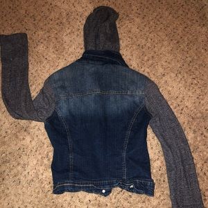 Jean jacket with cotton sleeves and cotton hood