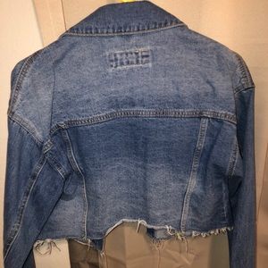 Hi! This jean jacket is a good material it’s not too thin. It is cropped and frayed at the bottoms. It’s a size small but fits big for a small.