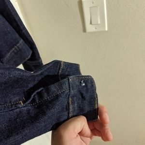 Missing button on the right sleeve. I used to style it with the sleeves rolled up. Secret pockets inside. I have too many jackets or else I'd keep it :)