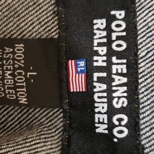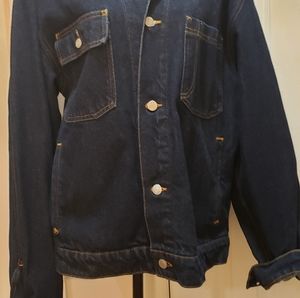 Heavy denim.. buttons everywhere. Large inside pockets...inside/outside logo