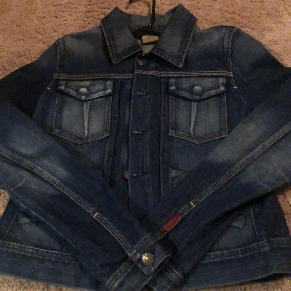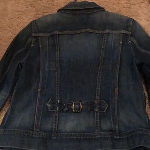 Distressed dark denim jean jacket. Worn twice!