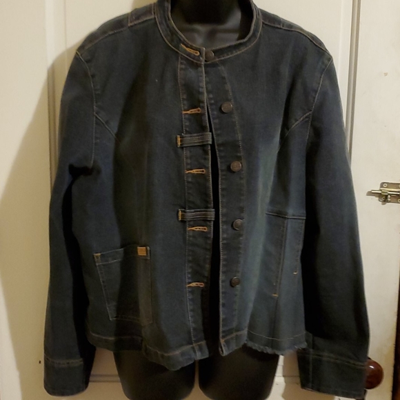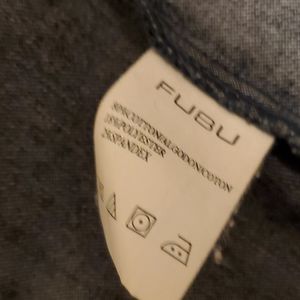 Fubu, jean button up, jacket in size 2x. Great condition. Measurements. Shoulder to shoulder 18in, armpit to armpit 24, armpit to hem 12, armpit to wrist 17. Pocket on right-side and pleated design on the left.
