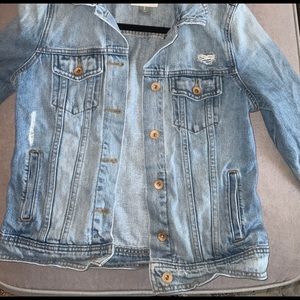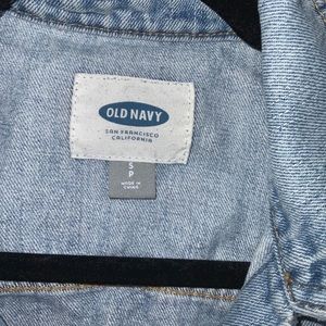 Old Navy light-wash jean jacket, lightly distressed