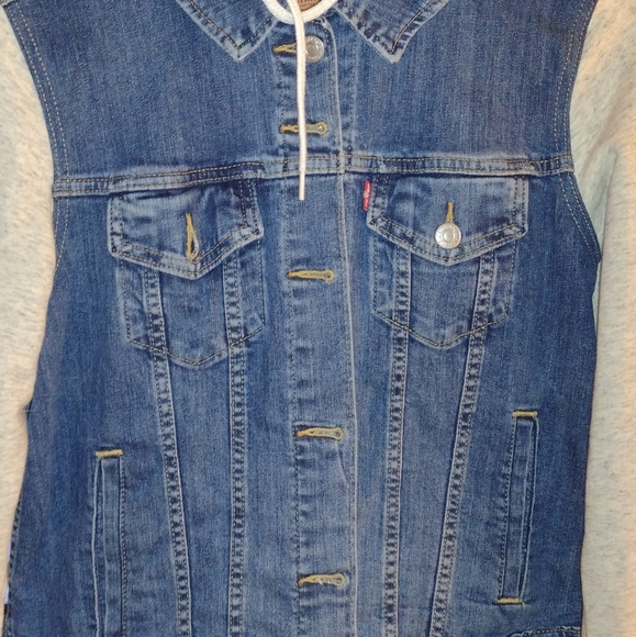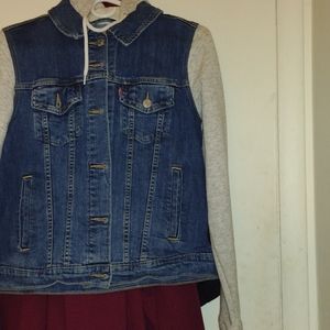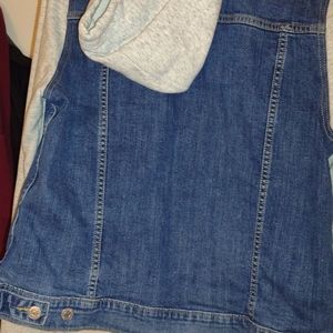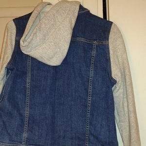 Jean jacket with hoodie and sweatshirt material. Great shape. Only worn twice. It just didn't fit me and didn't have time to return it.