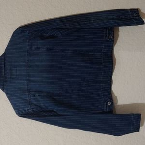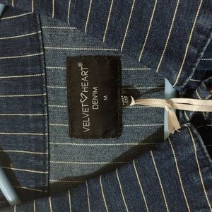 This is a pinstripe jean jacket by Velvet Heart and its a medium.