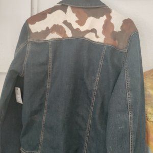 Hand painted, new, cow print jean jacket; Size 38/40. No matter your size it's perfect to fit over your top, comfortably.