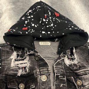Boys Jean button up Jacket with removable hood arms and hood are not Jean. Never worn