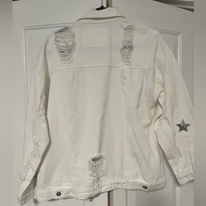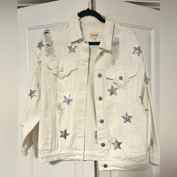 White jean jacket with silver sequin stars. Oversized fit. NWOT.