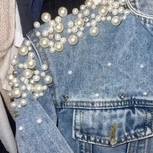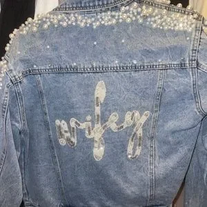 Wifey Jean jacket. Size small. Never been worn. Pearl details. Bought at a bridal boutique.