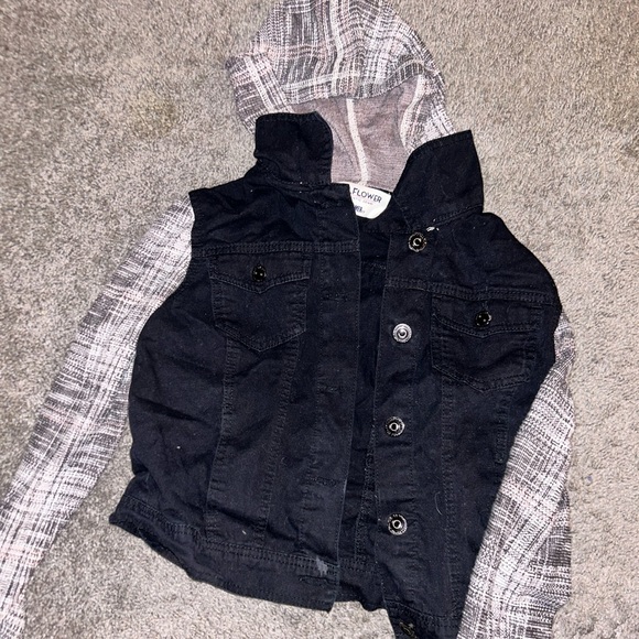 Jean Jacket With Hoodie Sleeve