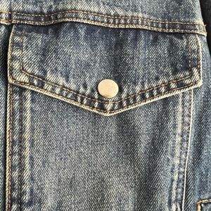 Purchased in Spain; size Large. Snap buttons. Clean, worn only a handful of times. Looks new.