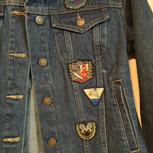 Jean jacket with patches by Forever 21. Size S. 100% Cotton.