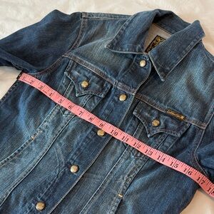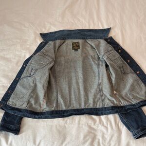 Classic denim jacket. Snap-front closure. Two chest pockets.