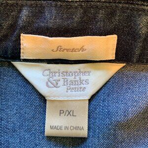 Christopher & Banks Stretch jean jacket. Size Petite XL, 73% cotton, 25% poly 2% spandex. Zip front, excellent condition.