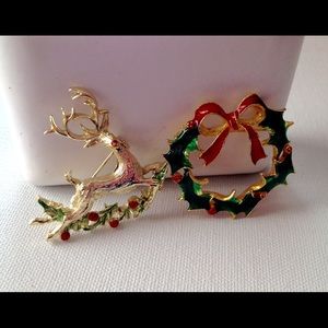 Christmas Pins Reindeer Wreath Xmas Holiday