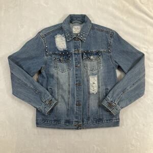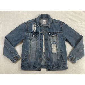 Jean Jacket Size Small Studded Distressed Medium Wash Punk Grunge Goth Y2K