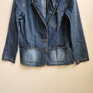 Jean Jacket Women's 0 Blue Denim Distressed Pockets Retro Boho Hippie Chico's