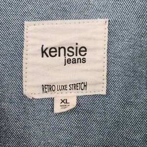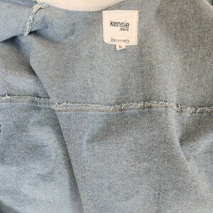 Lightweight unlined jean jacket with sherpa collar. Size XL. Waist length with two front pockets.