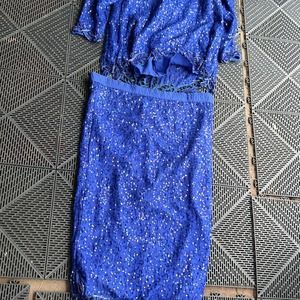 Jean Joseph Le Bon Silk Sequin Top Skirt Set Sz Medium Flaw