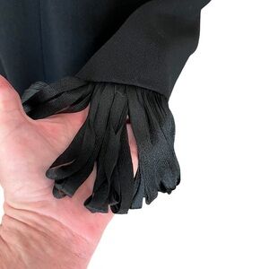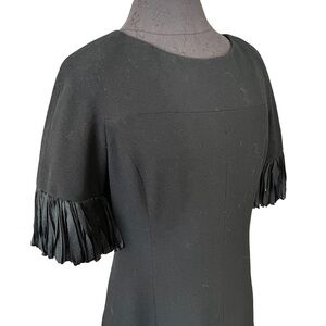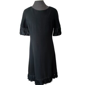 Jean Louis Black Vintage Wool Crepe Dress Fringed Trim Size 12 Medium RARE