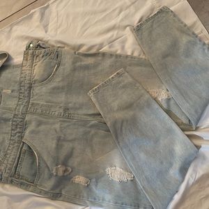 Light washed jean overalls
