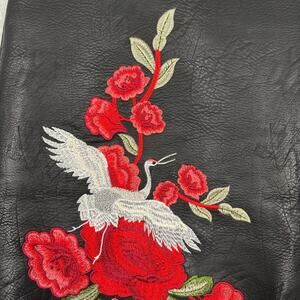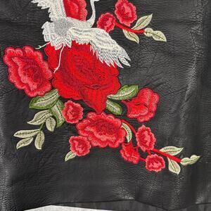 Jean Pascale Skirt Size 12 Mini Faux Leather Floral Embroidered Moto Witchy Boho