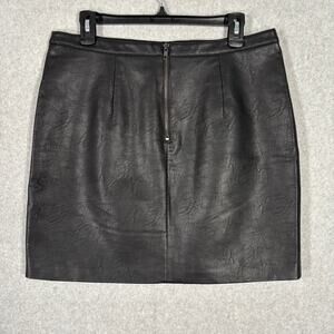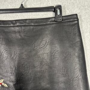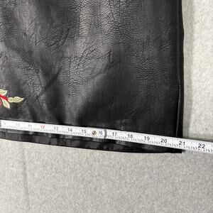Jean Pascale Skirt Size 12 Black Mini Faux Leather Floral Embroidered Moto Witchy Boho Lined Zipper Rock Biker