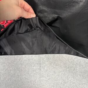 Jean Pascale Skirt Size 12 Black Mini Faux Leather Floral Embroidered Moto Witchy Boho Lined Zipper Rock Biker