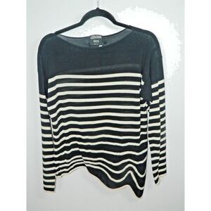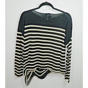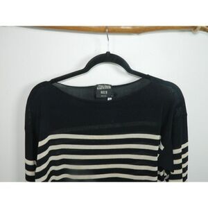 Jean Paul GAULTIER Sweater Medium Blue White Striped Knit Asymmetric Wave Hem