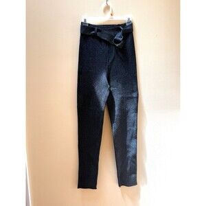 Jean Paul Gaultier Classique High Waist Belted Metallic Black Silver Pants Sz S