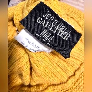 Jean Paul Gaultier italian high end designers warm and stylish mustard yellow knit hat. Perfect for chilly days.