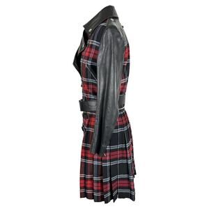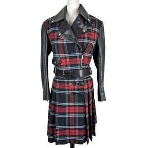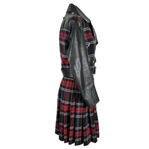 Jean Paul Gaultier Fall 2014 Plaid Wool Leather Moto Jacket & Pleated Skirt IT40