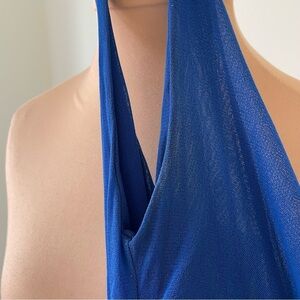 Jean Paul Gaultier Fuzzi Blue Mesh Sleeveless V-Neck Knot Front Dress EUC Size S