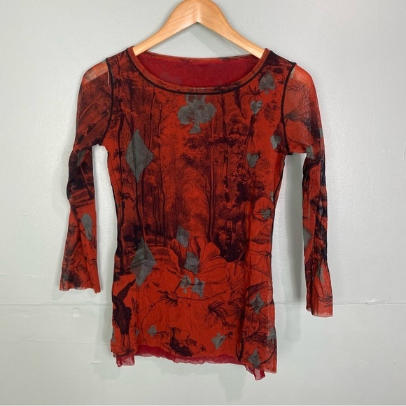 Jean Paul Gaultier Fuzzi Mesh Cards Hearts Spades Birds Y2K L? Read Description