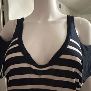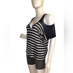 Jean Paul Gaultier Navy and White Top Cold Shoulder Top size L