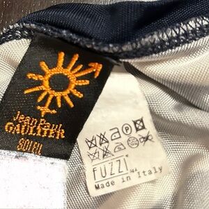 Chic navy and white top by Jean Paul Gaultier. Ideal for stylish outings.