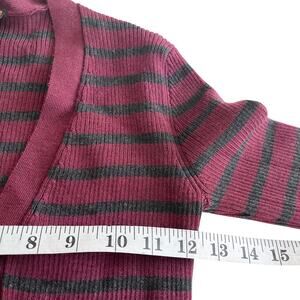 Jean Paul Gaultier Soleil Burgundy Striped Rib Knit Cardigan Sweater Sz S