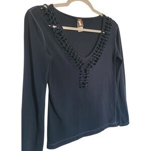Jean Paul Gaultier Soleil Distress Cutout Long Sleeve Cotton Top Size Small VTG